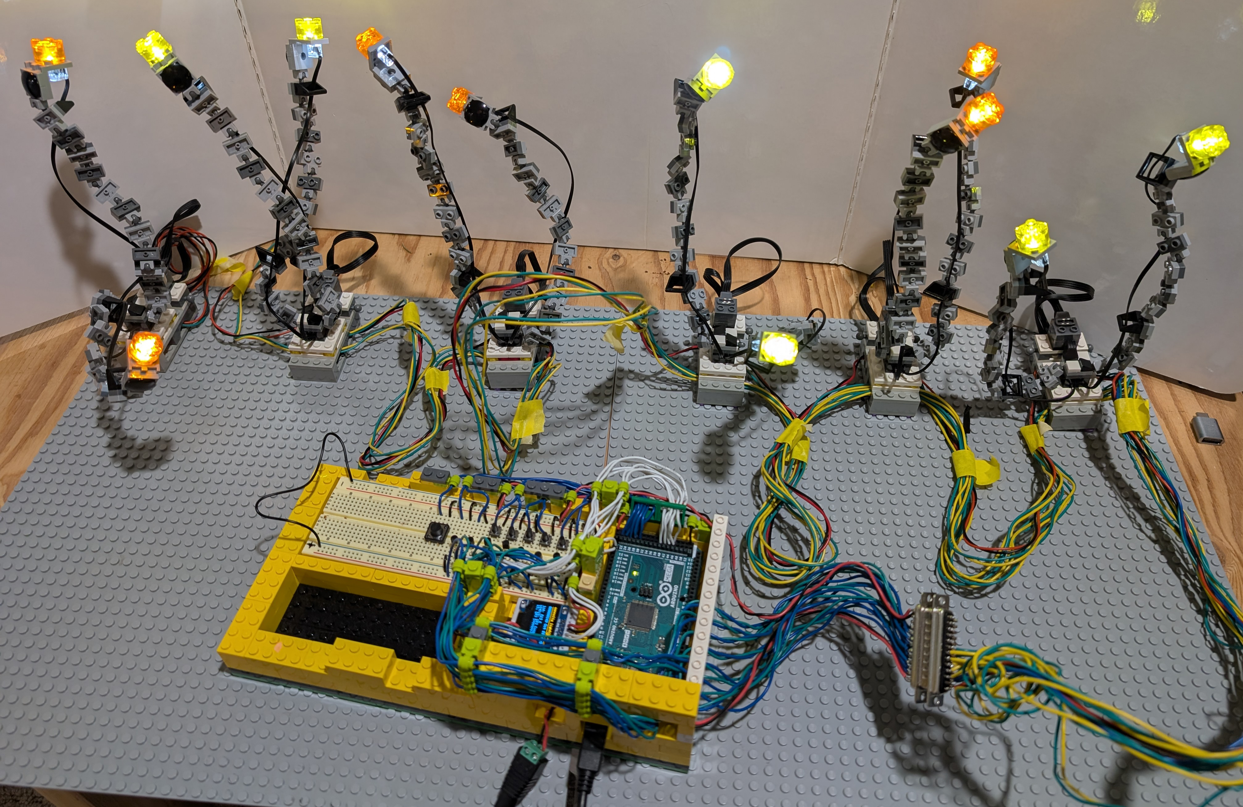 The cool light stand array integrates a set of Lego Power Functions Lights with an Arduino controller.