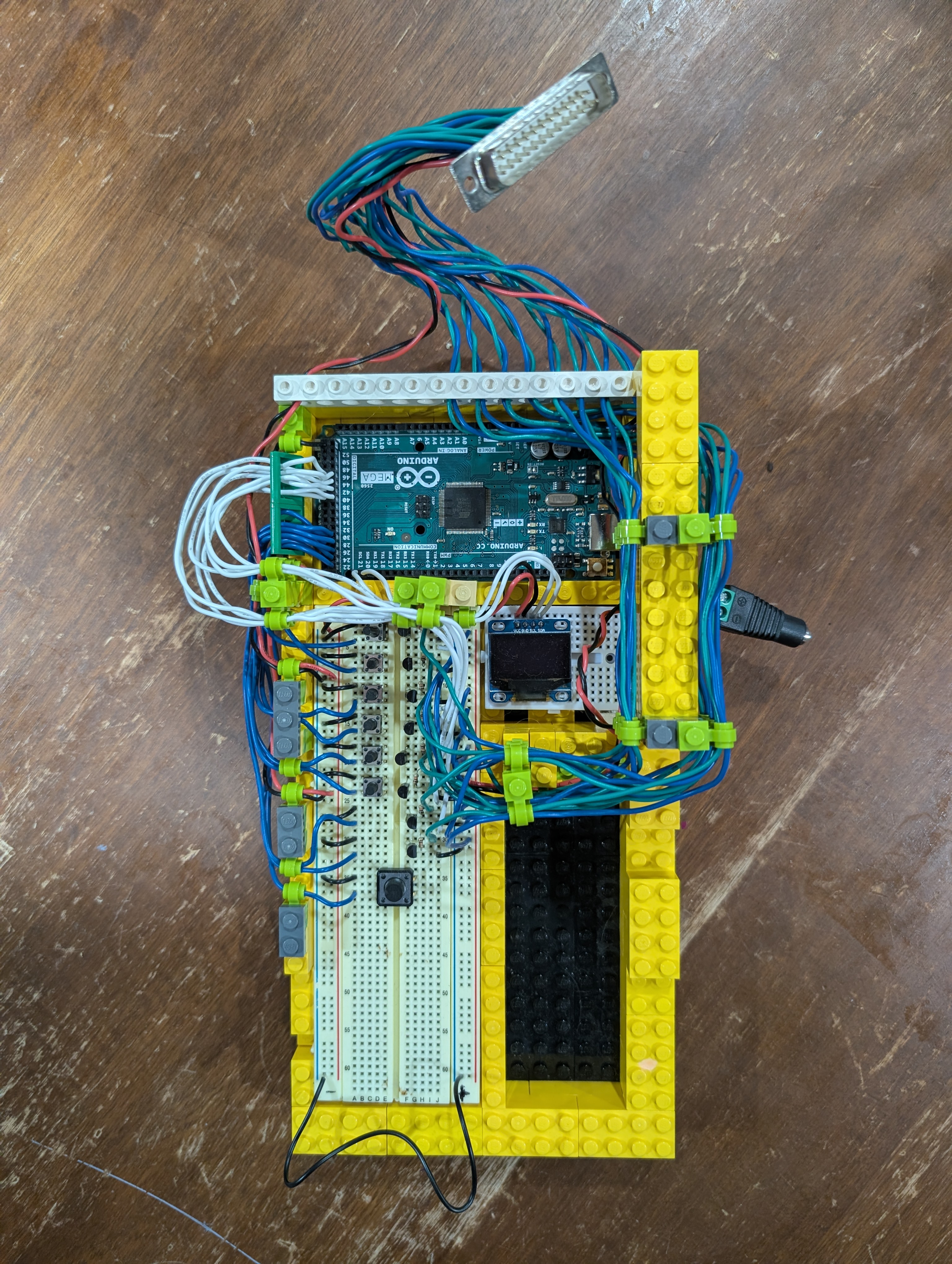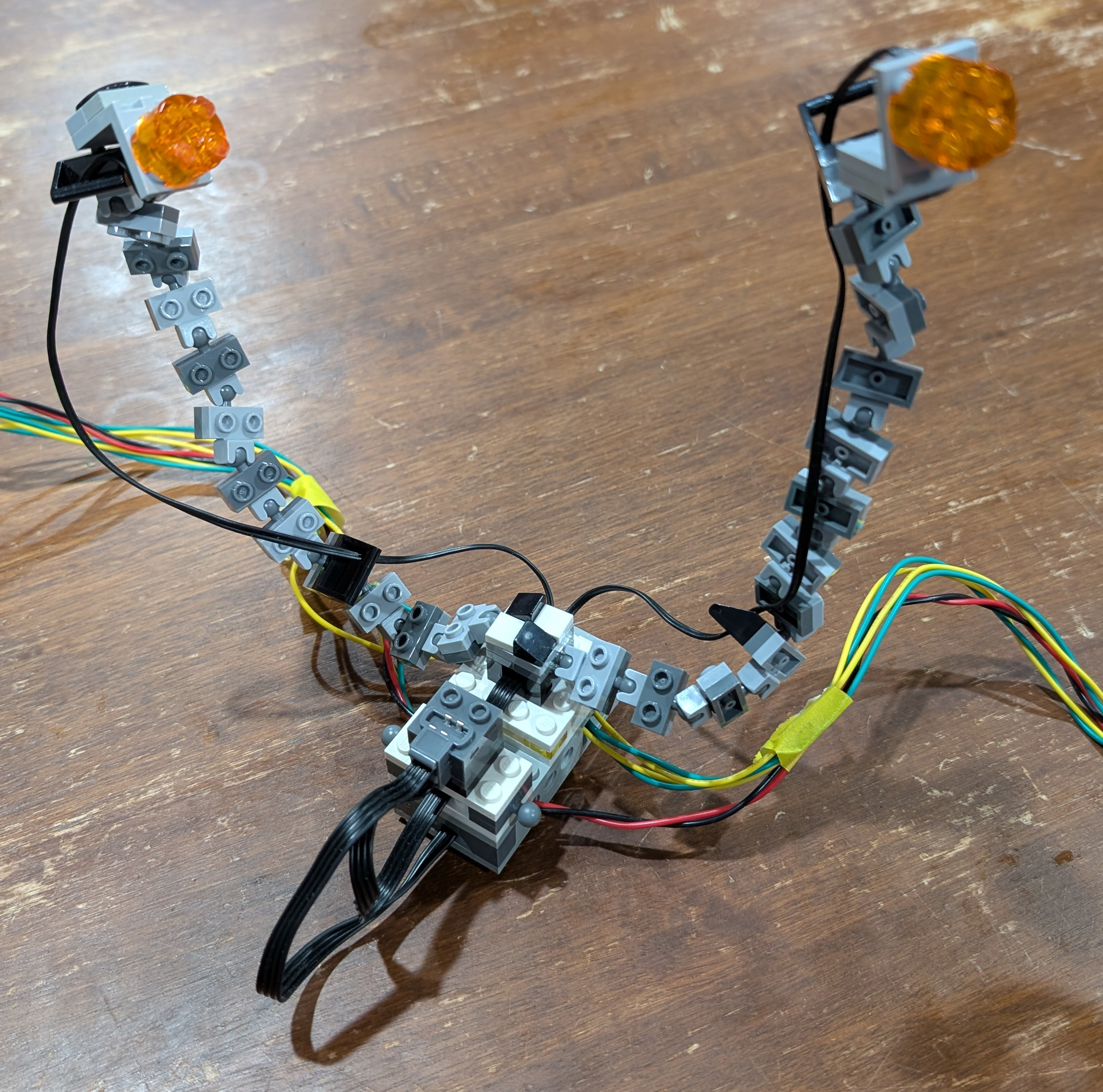 This was designed to be part of a Lego exhibition; it was placed around a larger exhibit to add highlighting and a little fun. Its functionality includes:
